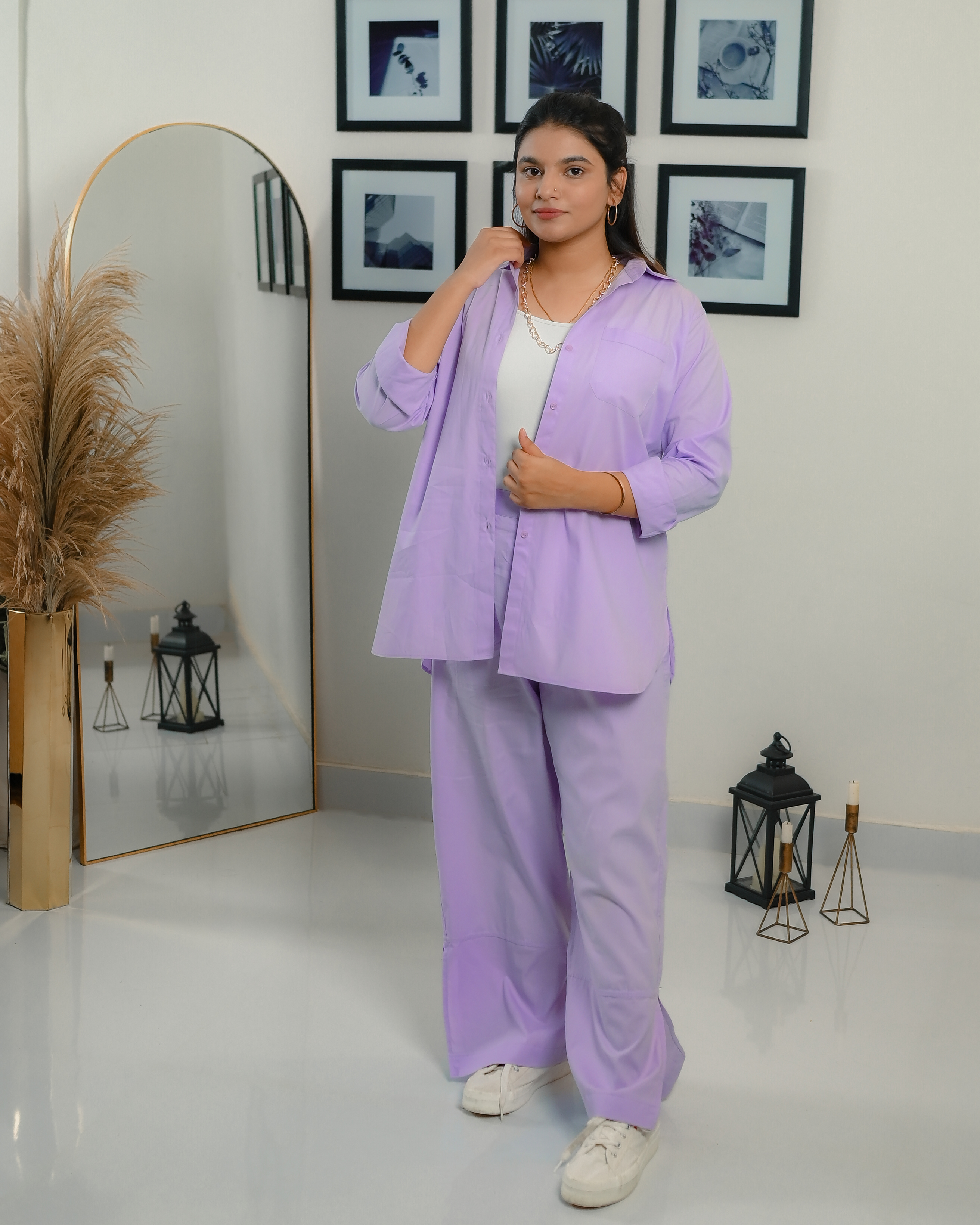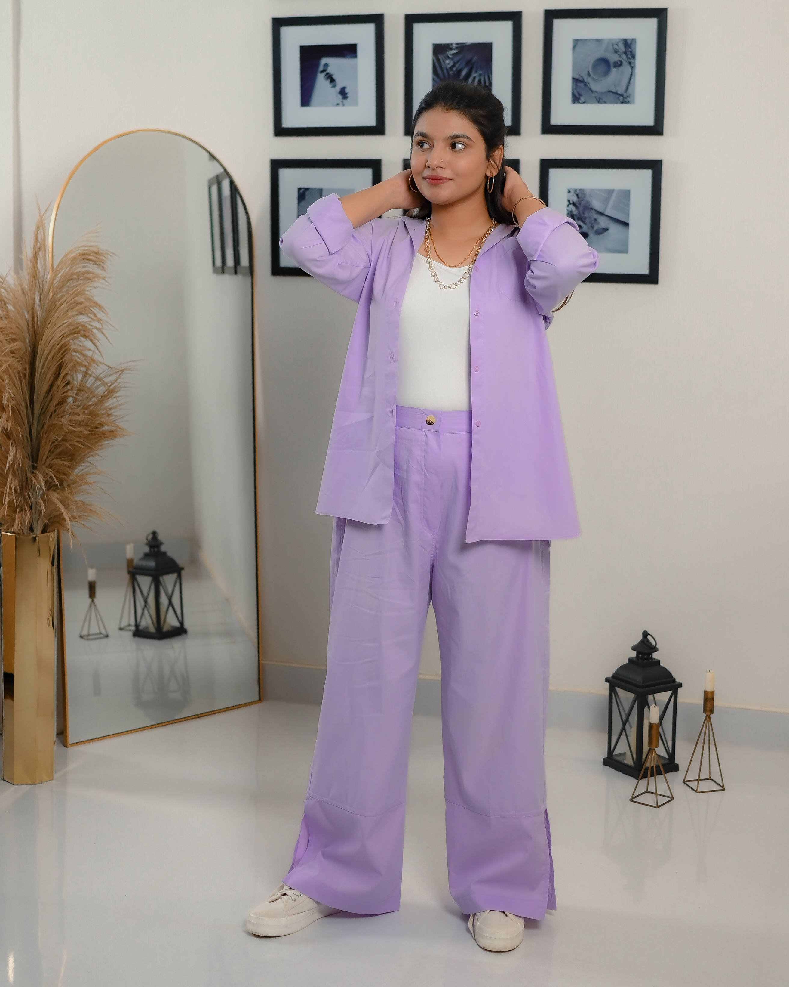 Introducing our cotton coord sets in soft pastel shades. The button-down shirts have a nice round bottom, and the flary pants feature a stylish cut. These sets are super comfy and breathable. Your perfect choice for a day of pure comfort!